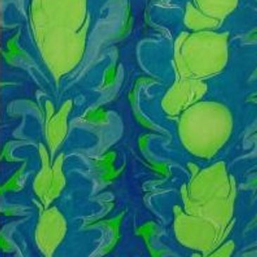I work with many types of fibers, pigment paints, and dyes. My quilted fabric paintings and 3D vessels are better known but I also wet felt and needle felt with wool to create abstract landscapes and 3D vessels. I have a special interest in painting marbled fabrics (see above image) and have run a number of marbling workshops over the years.